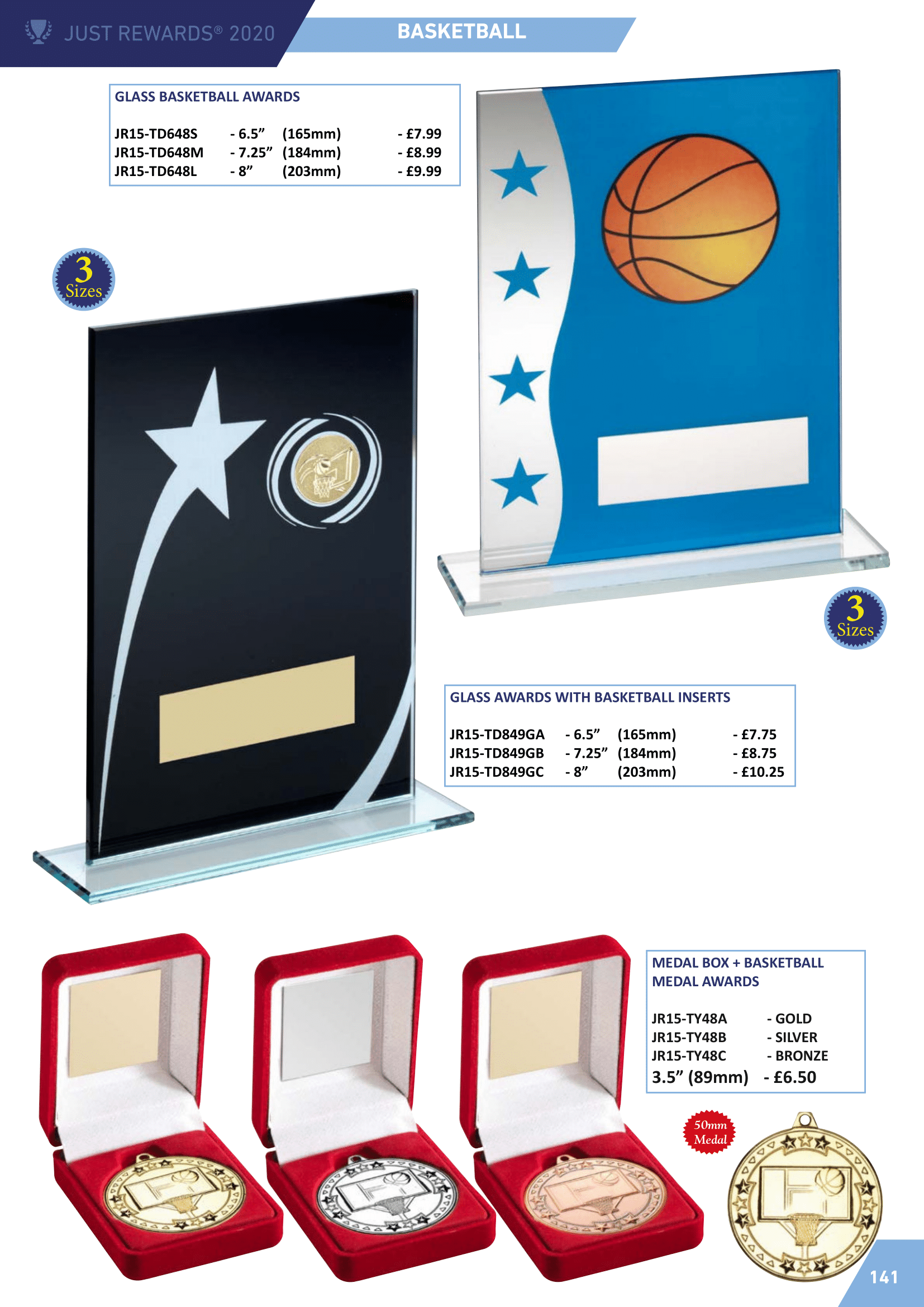 See our medals sections in Products A-Z for more medal choice.