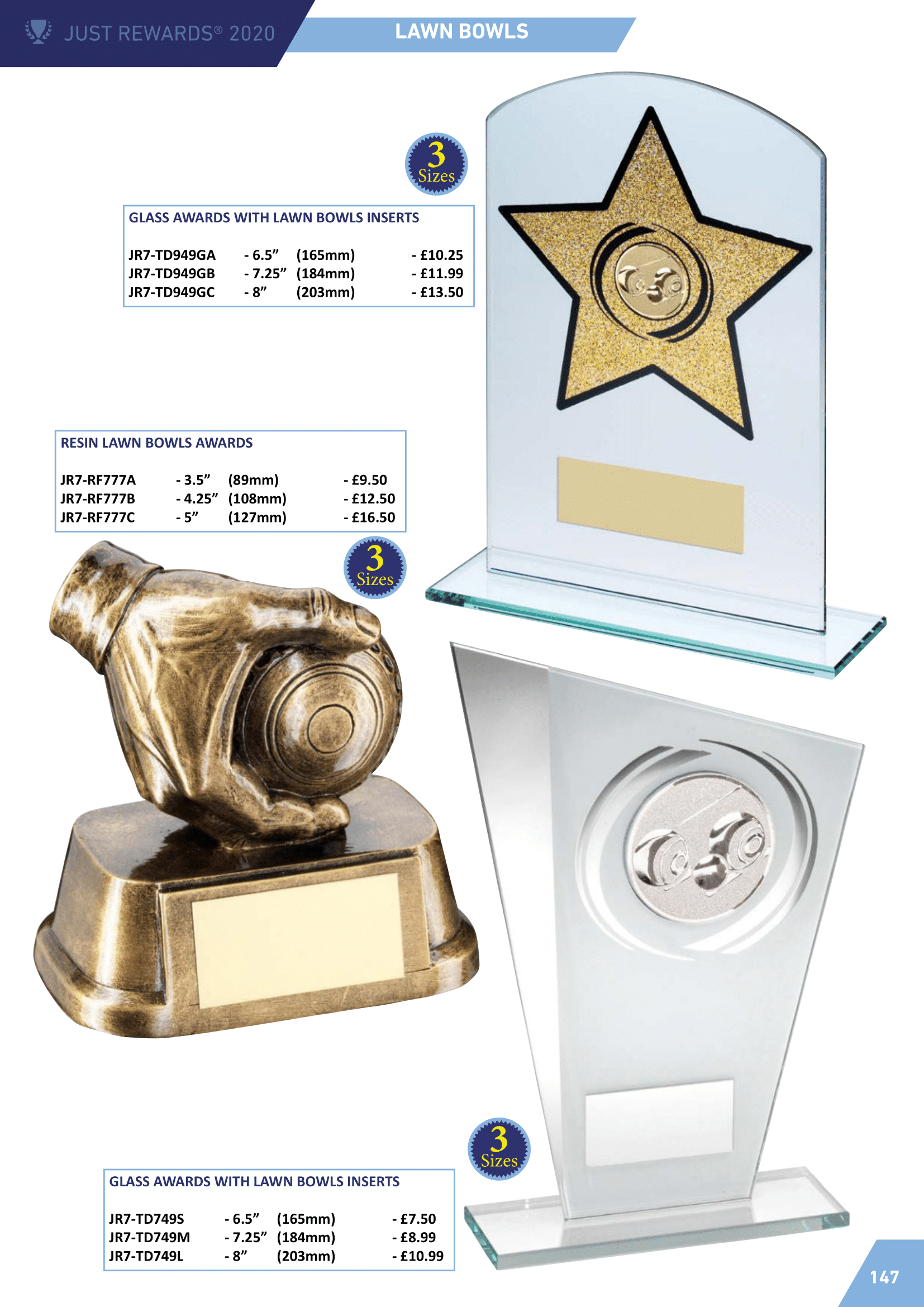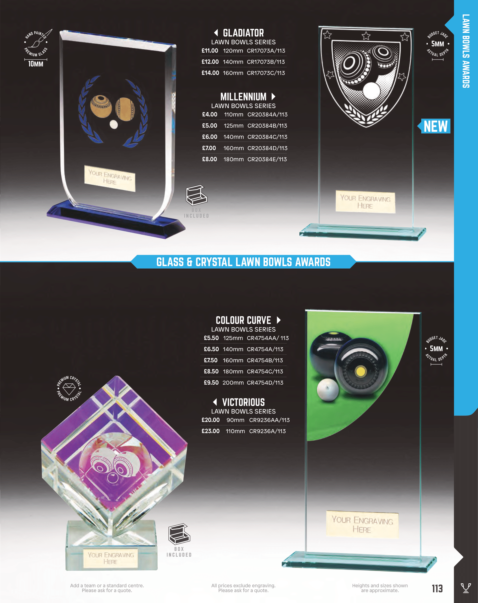 Lawn bowls and short mat bowls trophies & awards for any bowls presentation. Resin bowls figures and woods. Glass bowls trophies also shown.