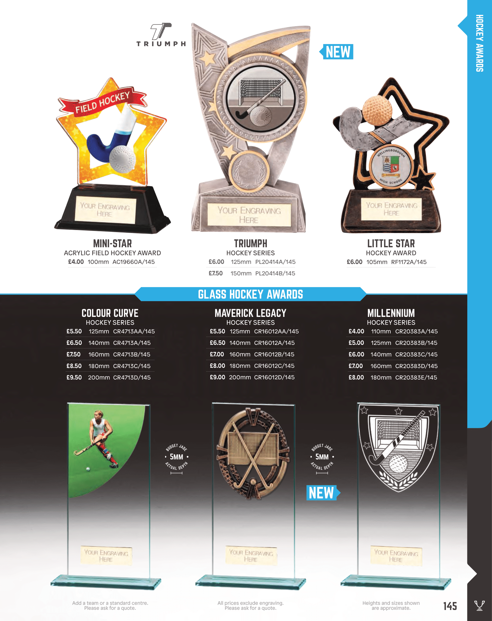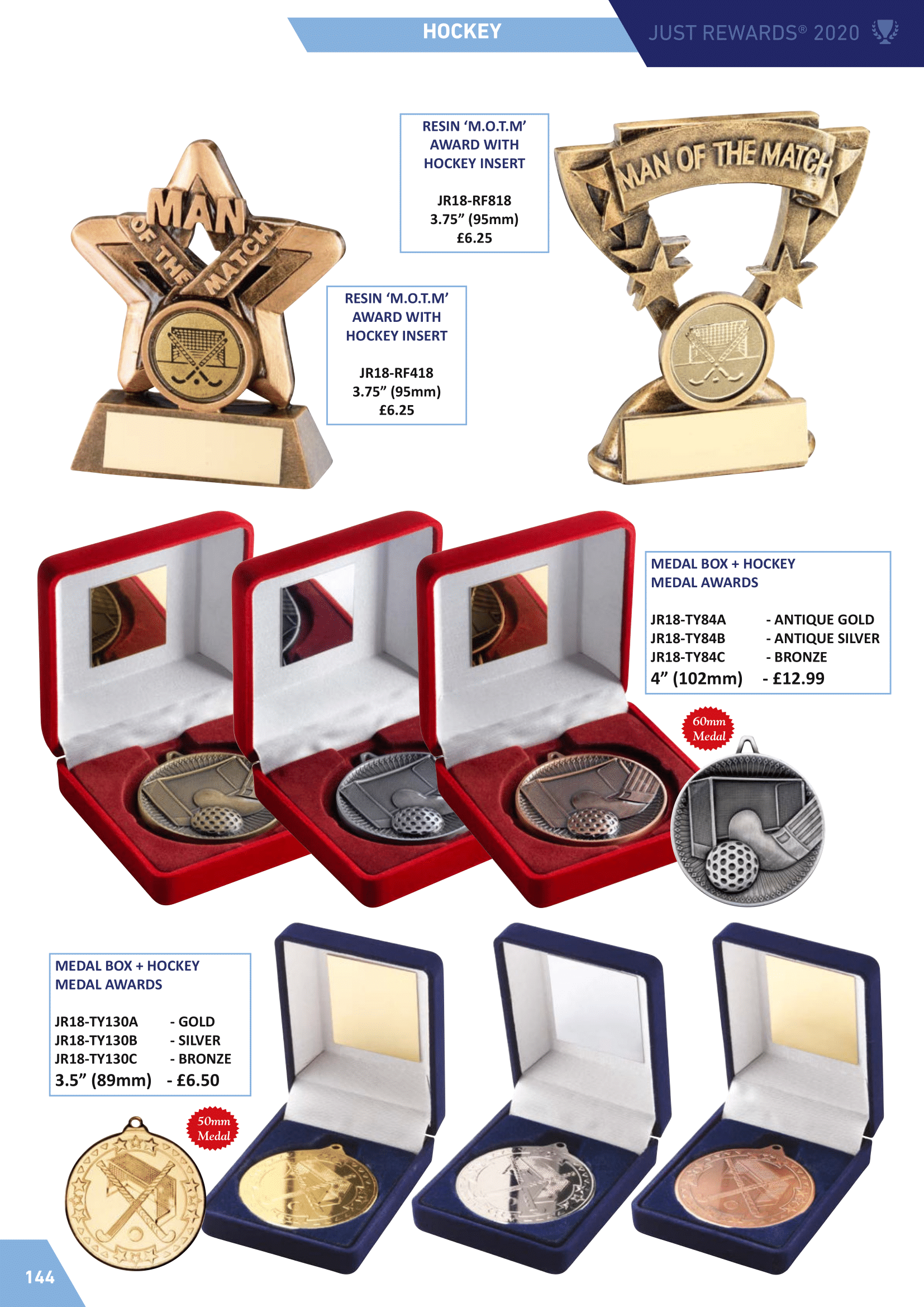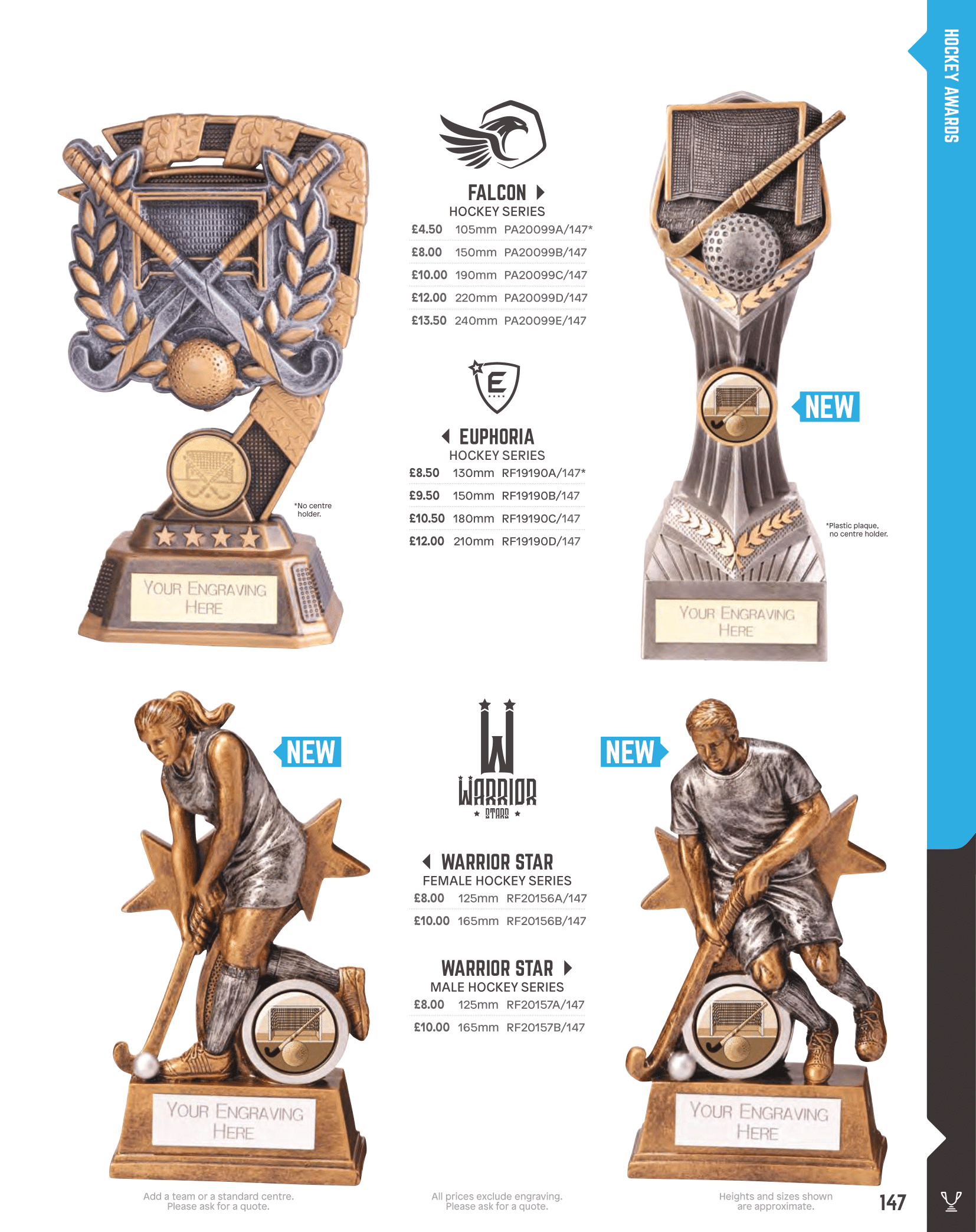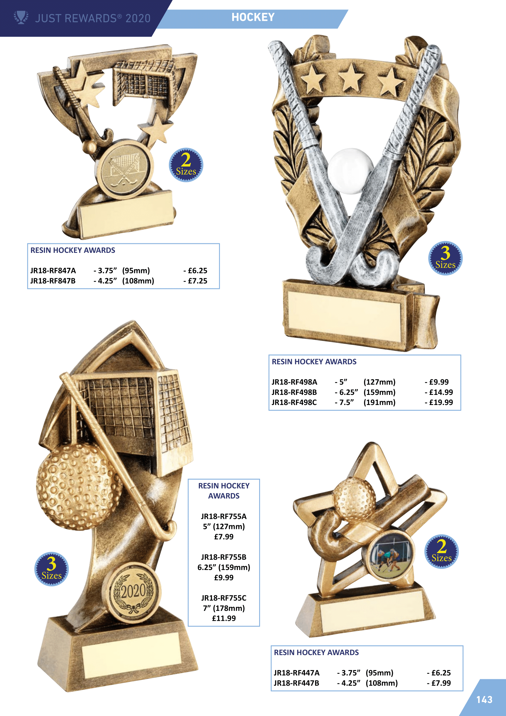 Resin hockey trophies, glass hockey awards and hockey medals.