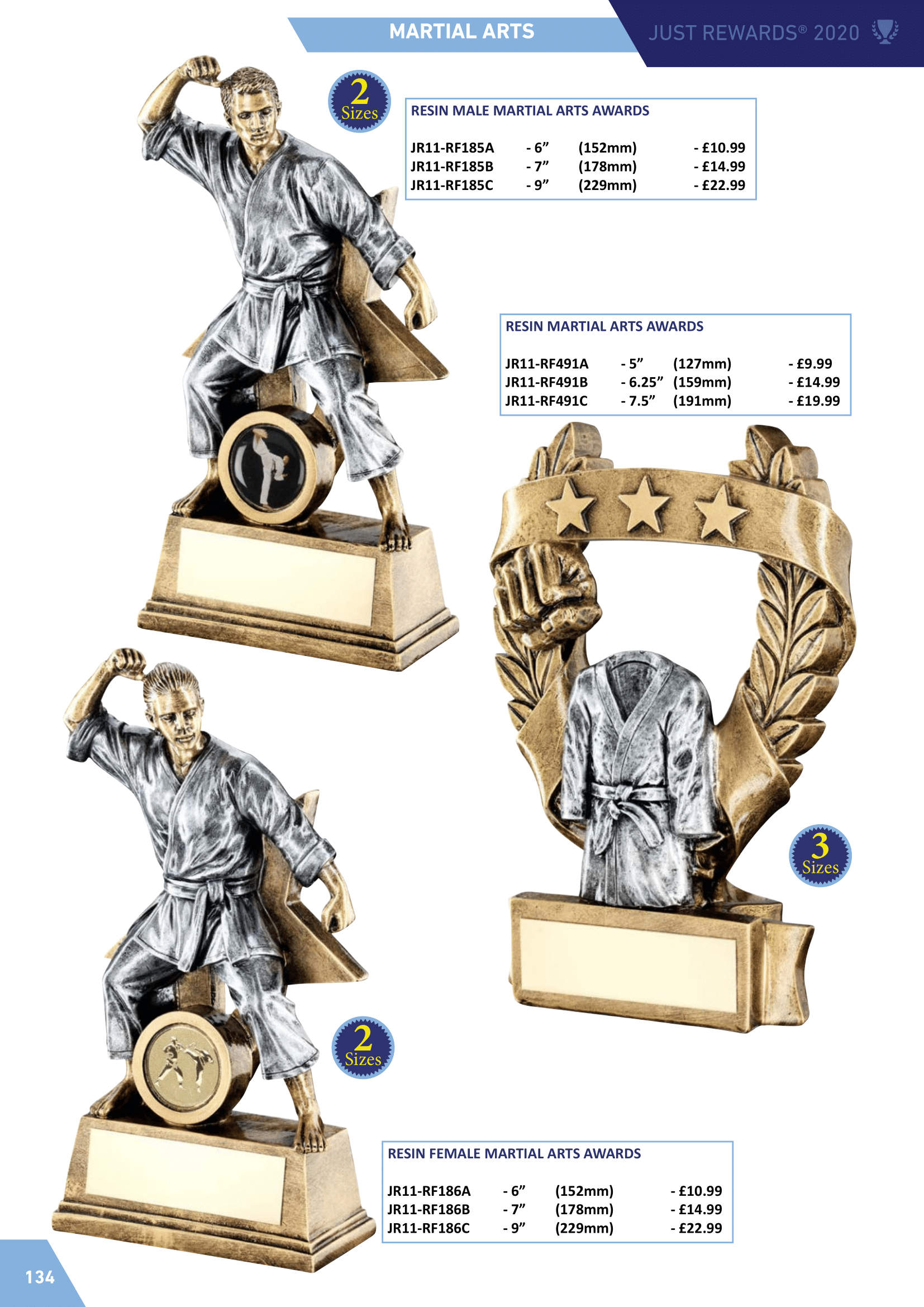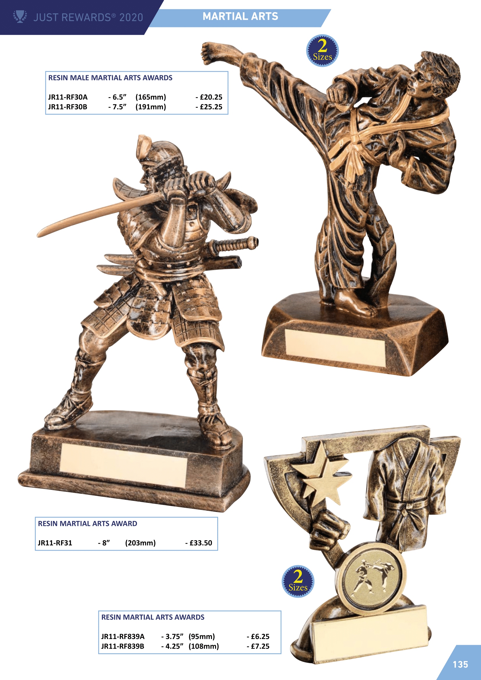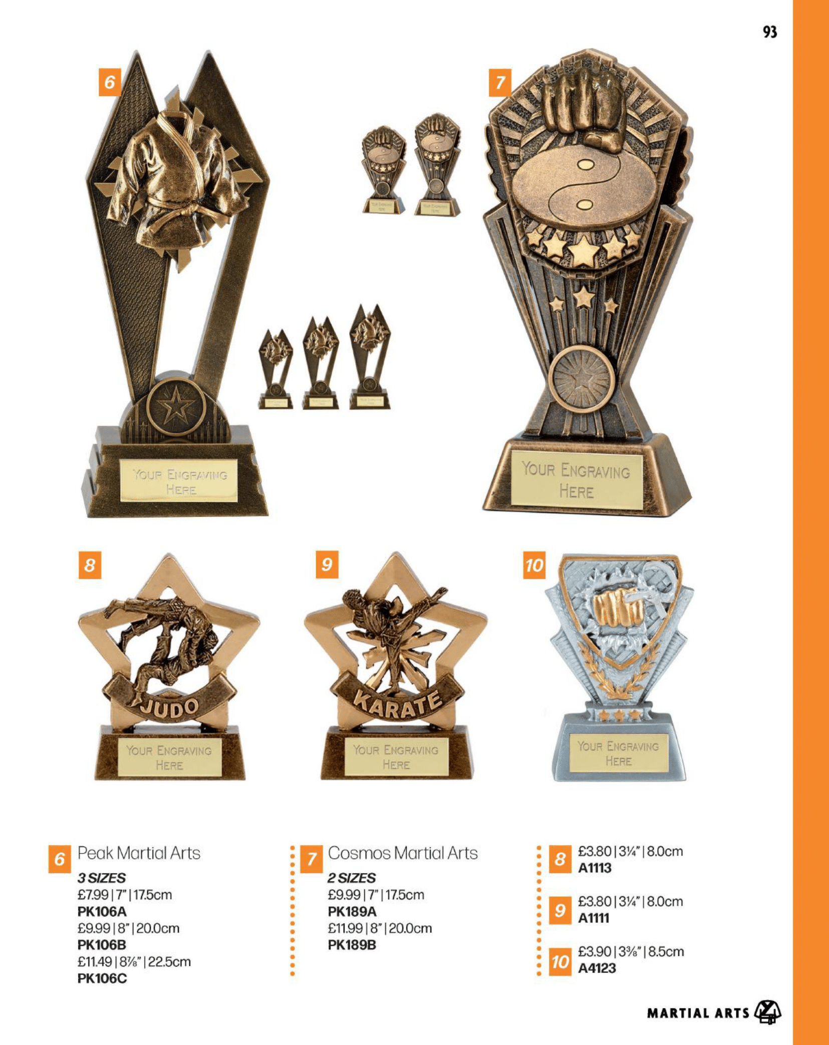 Martial arts awards including judo, karate and taekwondo.