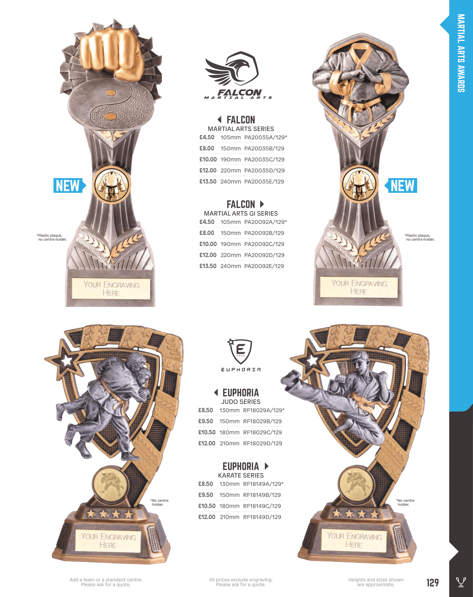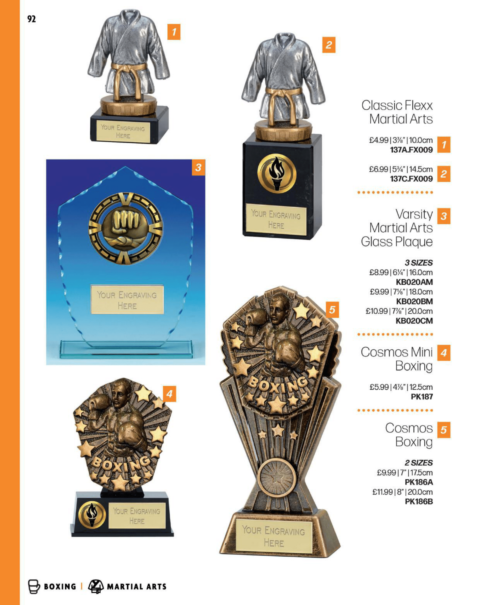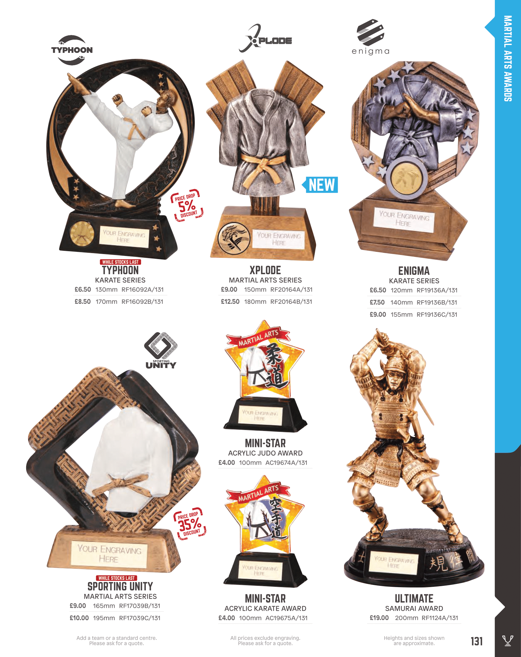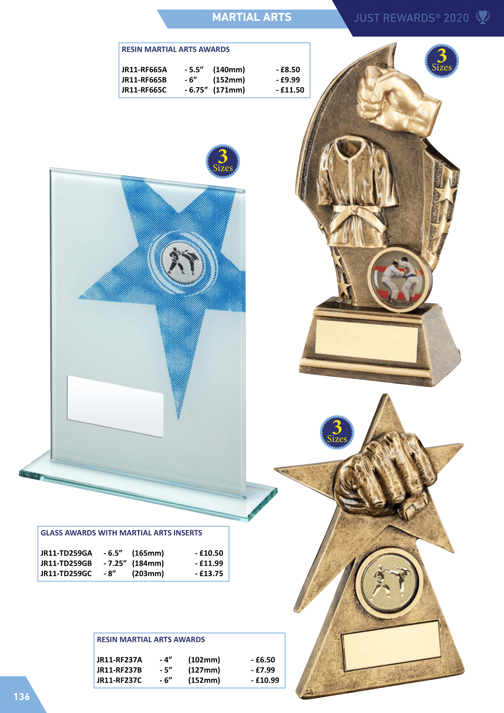 Martial arts awards including judo, karate and taekwondo.