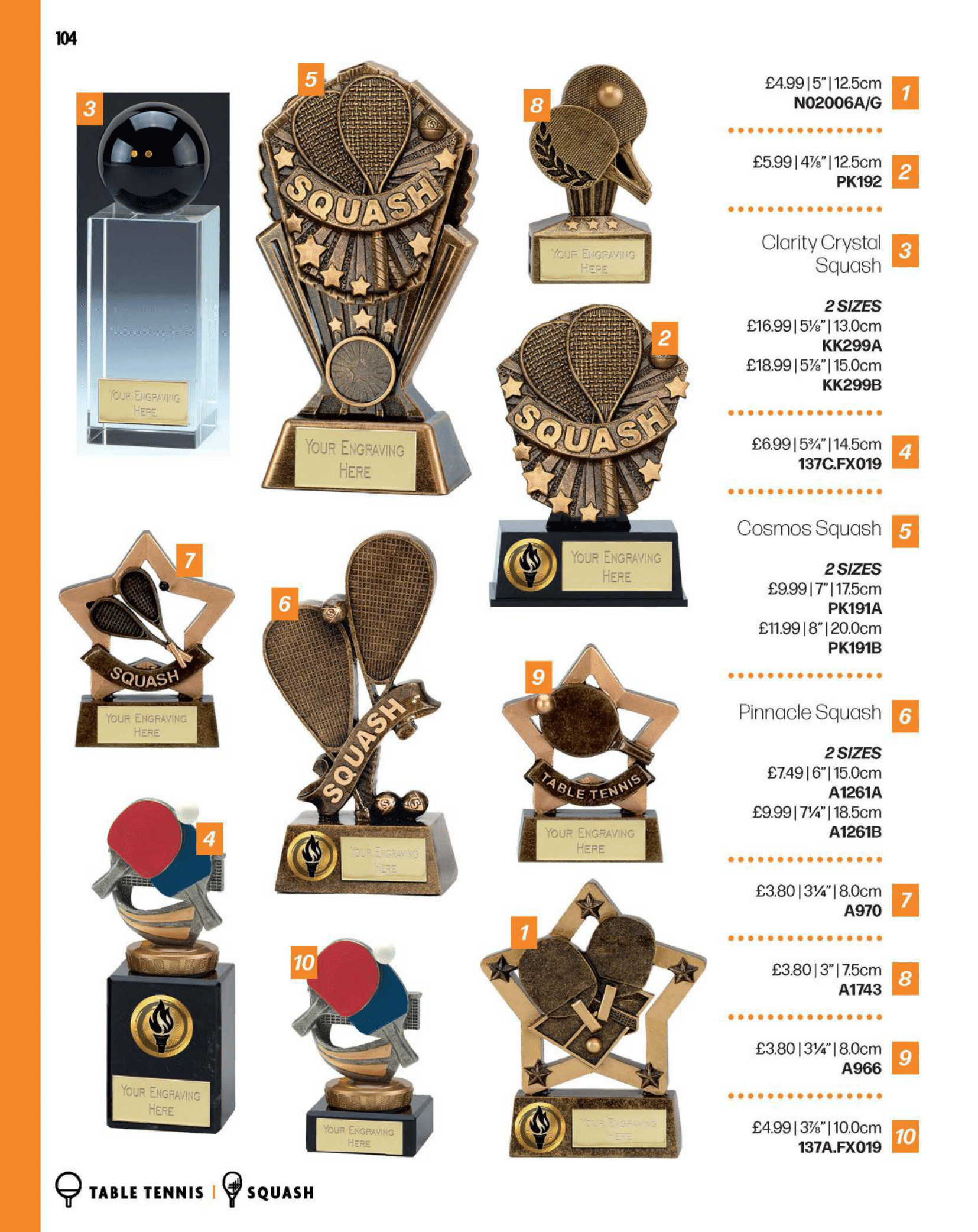 Squash trophies and awards.