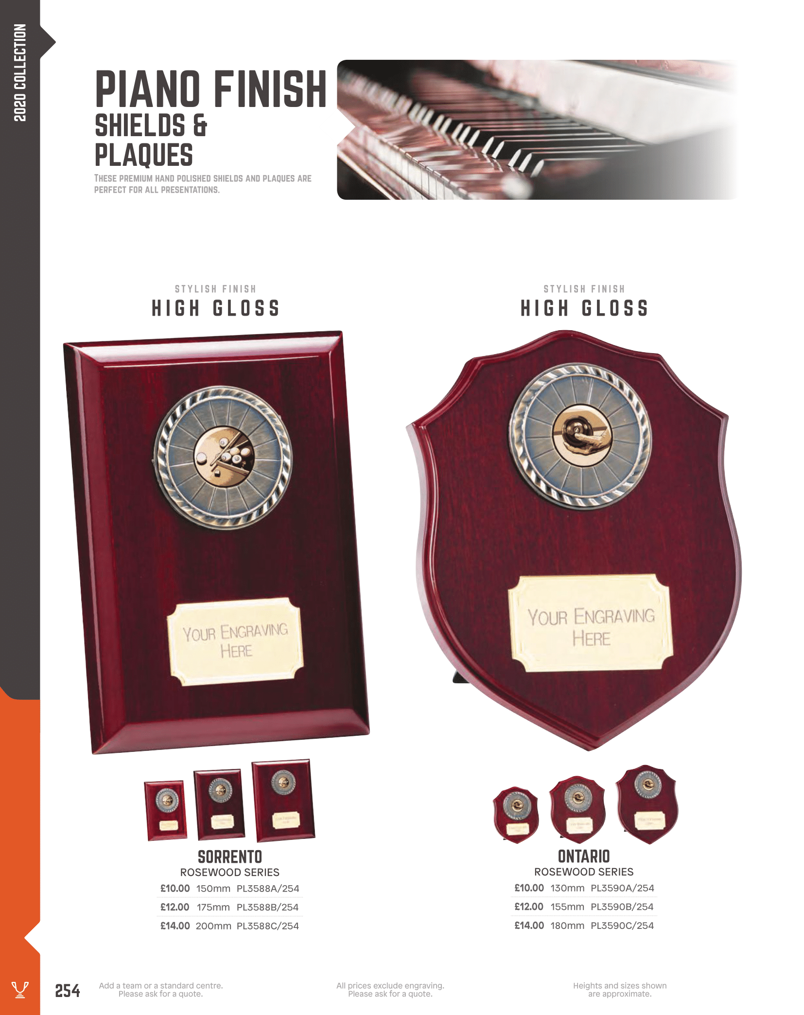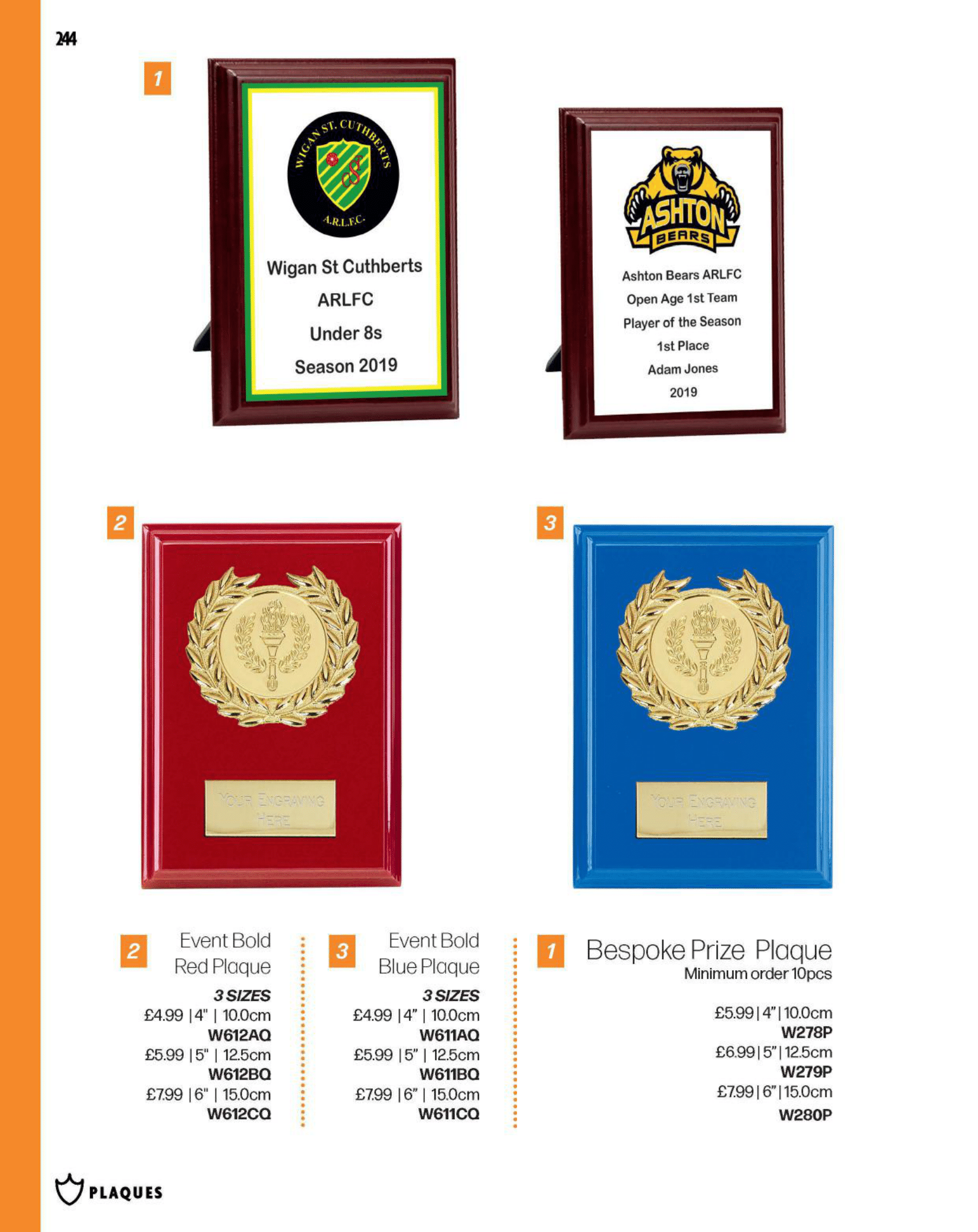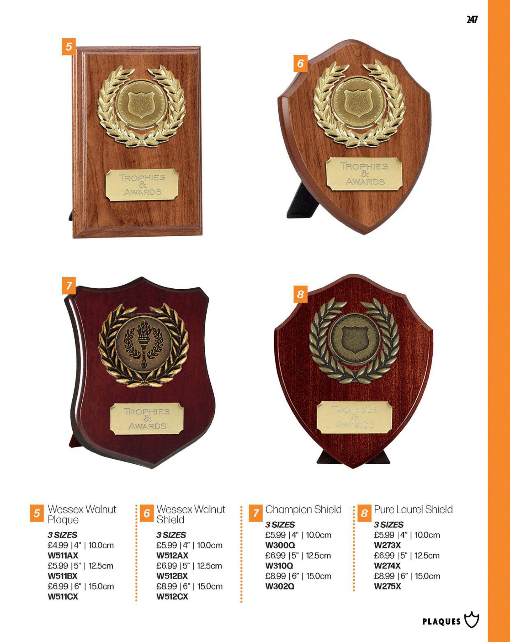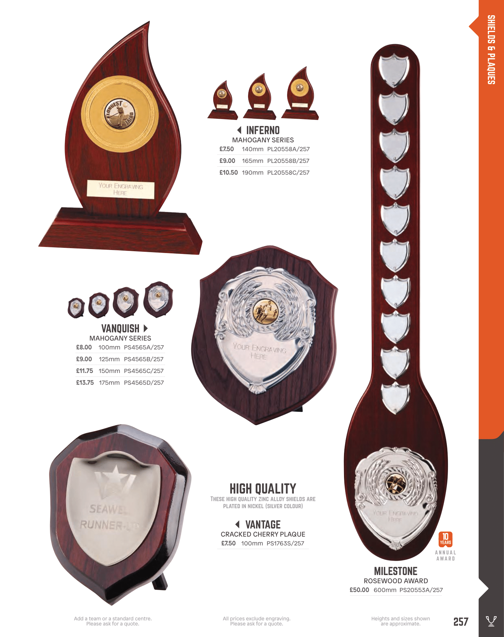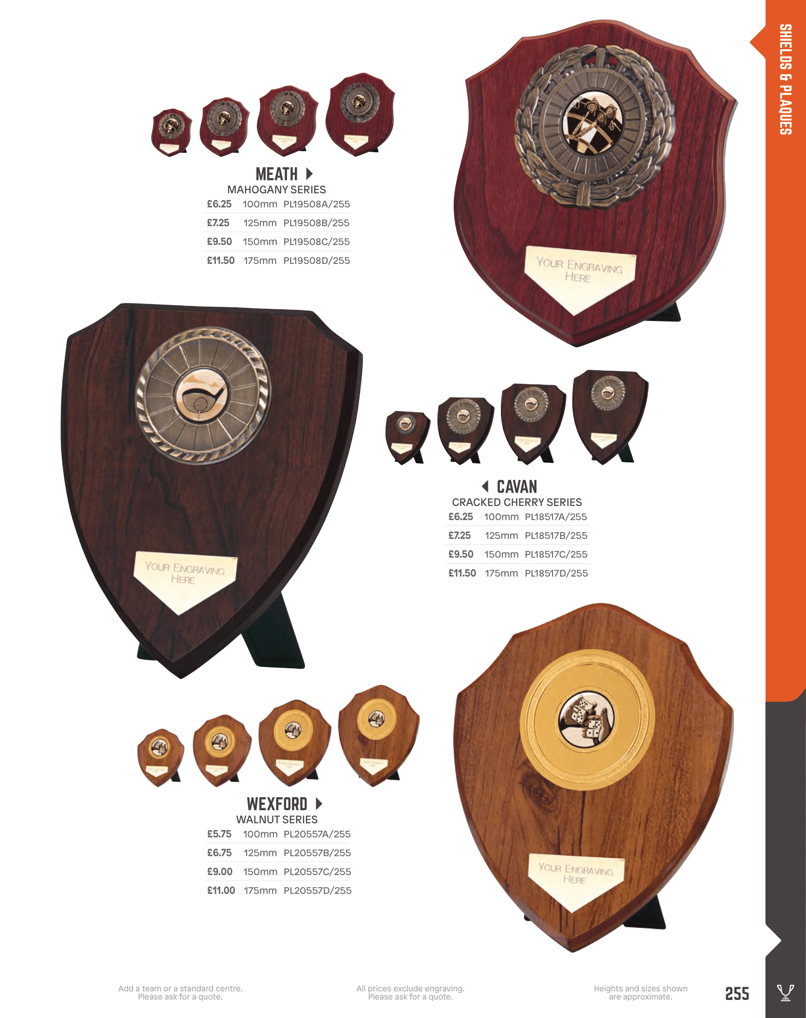 Affordable wooden shield awards to suit any presentation. Classic dark wood shields along with modern blue and red shields. All trophy centres can be changed to suit any sport or pastime.